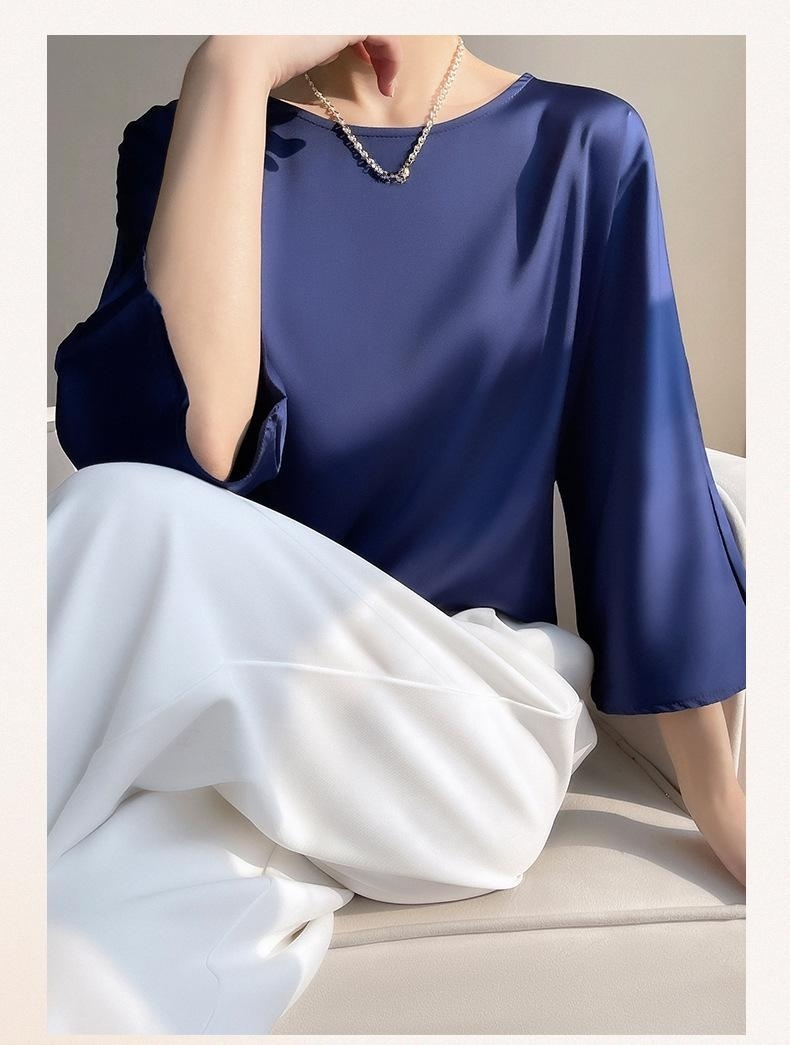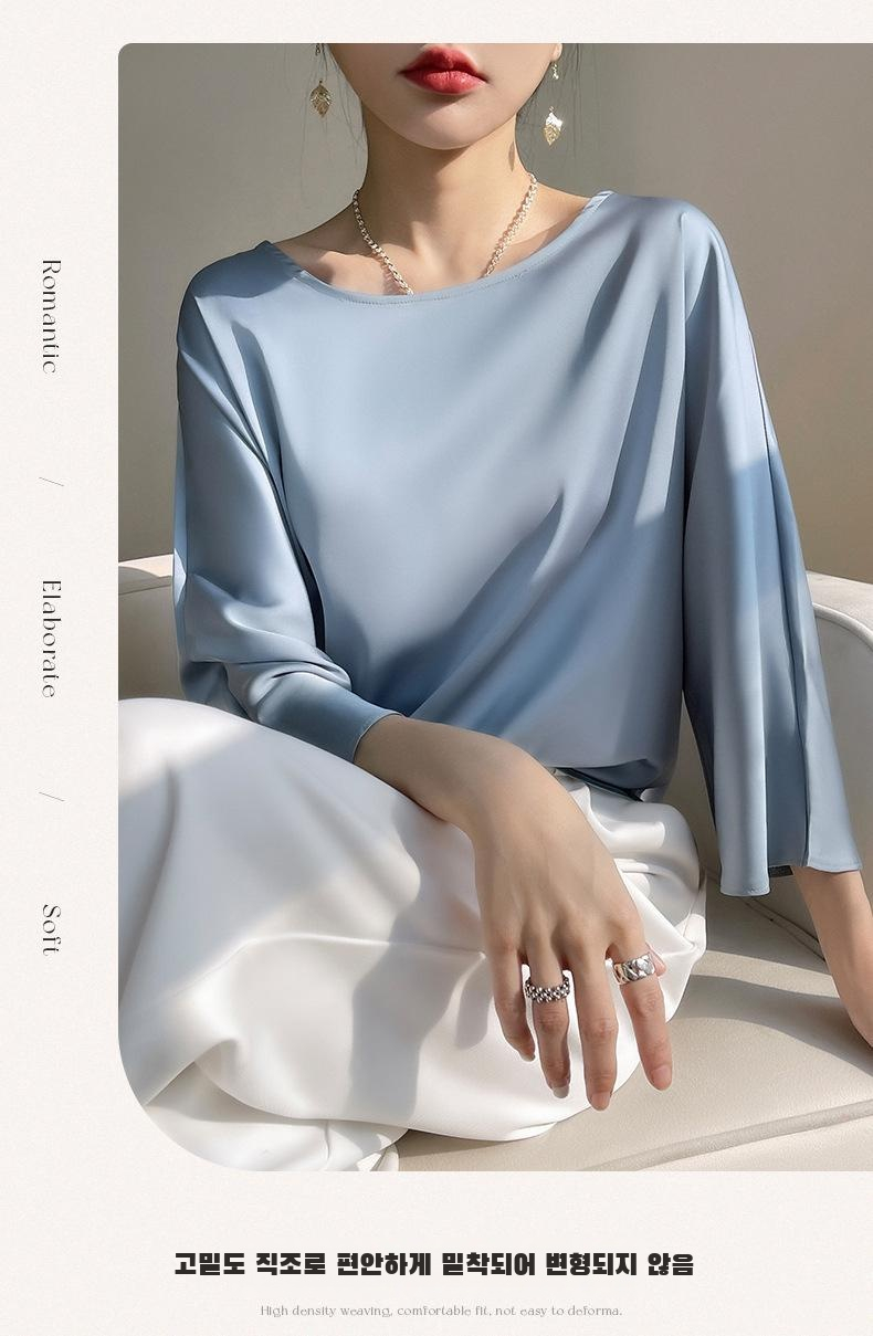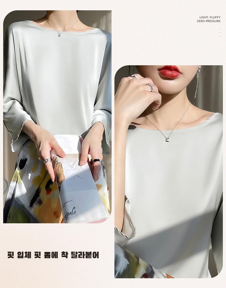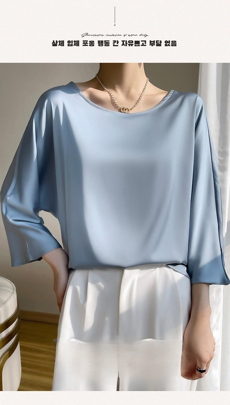 실크 뽕나무 실크 패션 상의 반팔 티셔츠 여 여름 코디 초산 새틴 반팔 상의 얇은 디자인감
