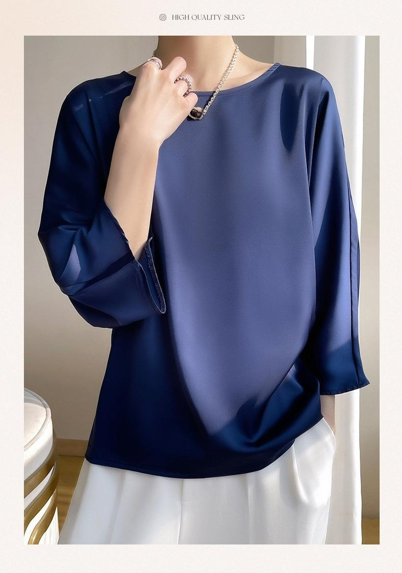 심플한 디자인의 여성 실크 반팔 티셔츠